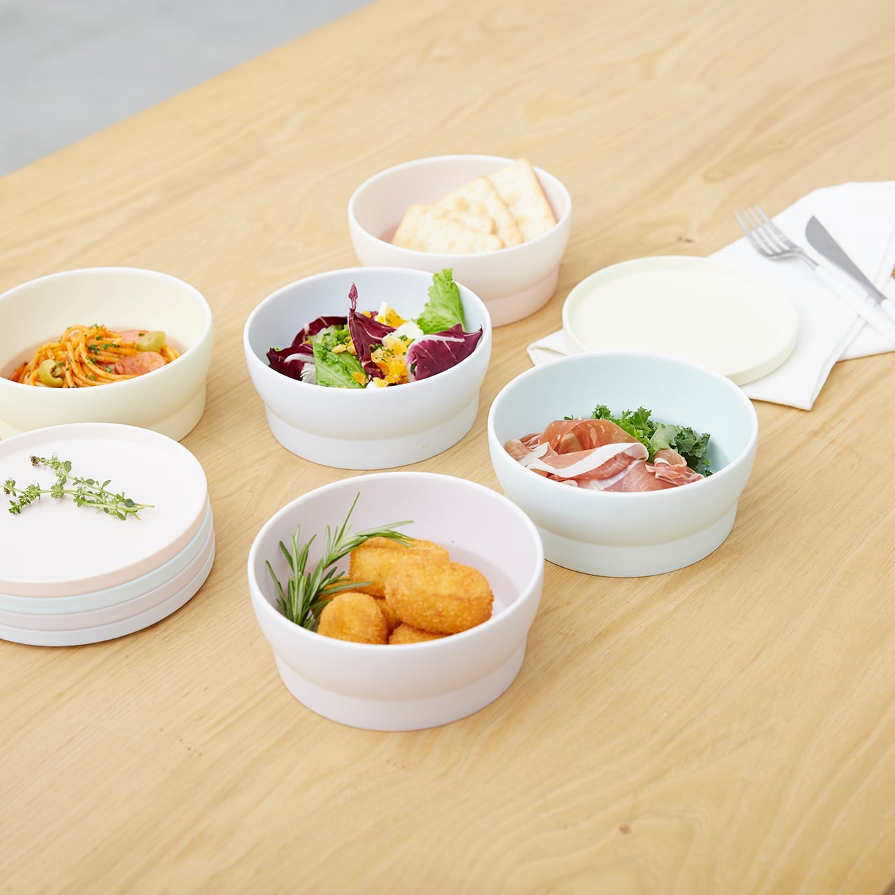 薬味を入れたり、サラダや煮物などを入れたりするのに便利なボウルSの5色を
