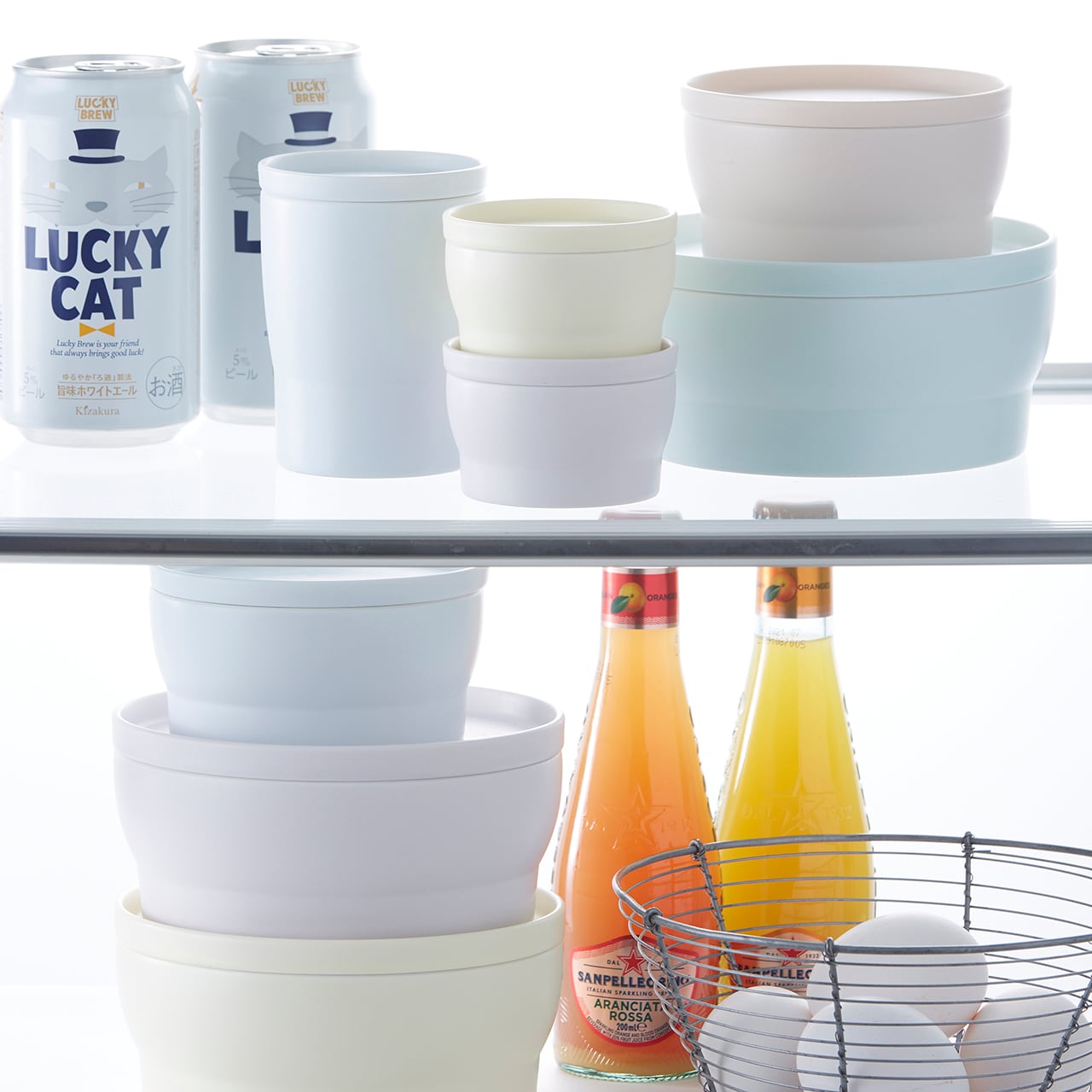 違うサイズの器は入れ子のように、同じサイズの器は積み重ねることができるので、狭いスペースでの収納が可能です。