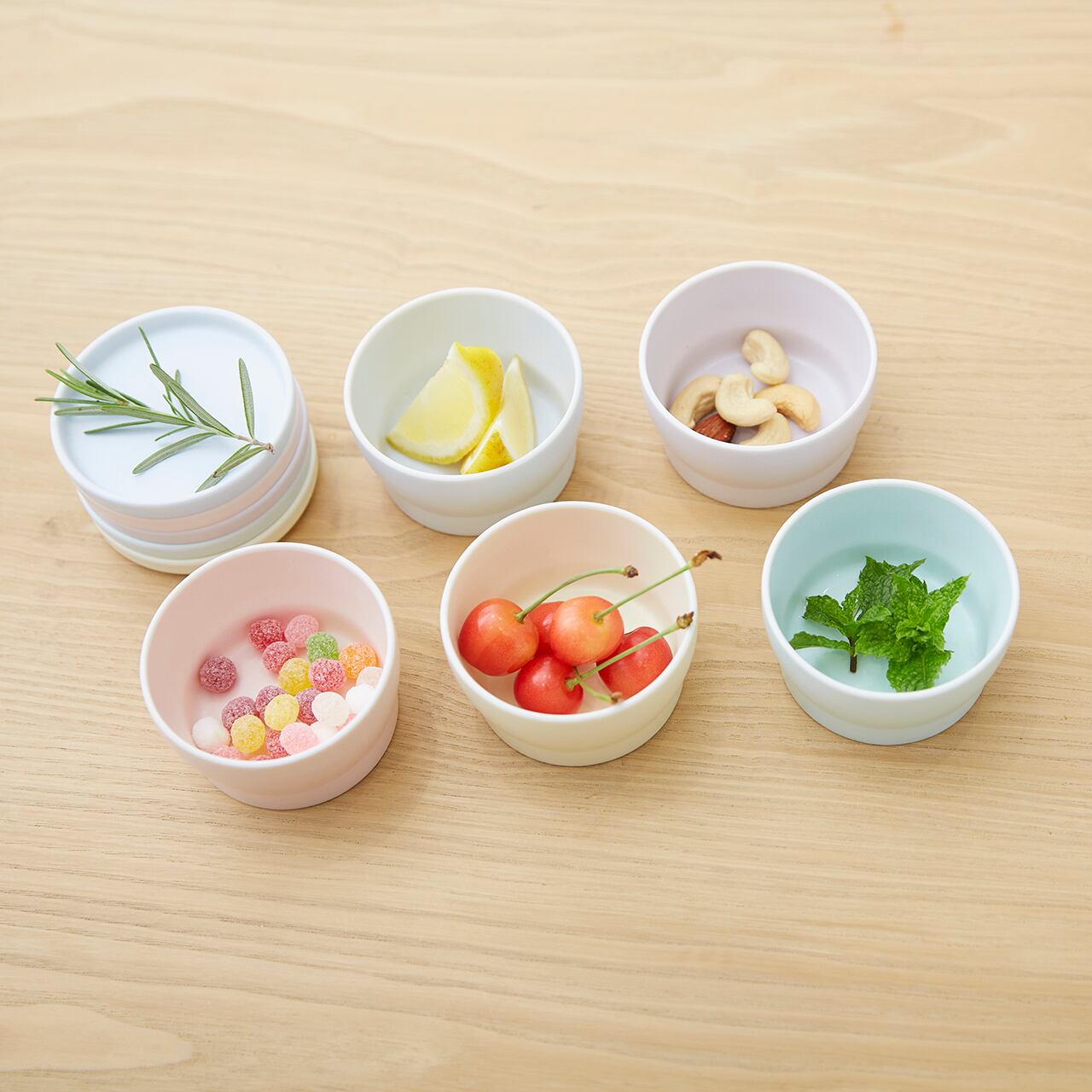 サイズ:ボウルS 約Φ71× H40mm、ボウルM 約Φ107× H50mm、プレートS 約Φ71× H12mm、プレートM 約Φ107× H13mm