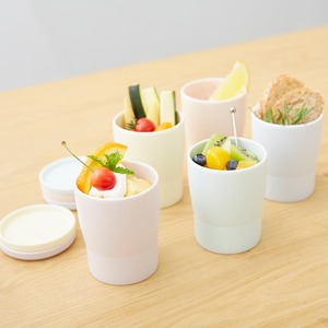 カップ、ボウル、プレートは単品でお使いいただくことはもちろん、プレートをカップやボウルの蓋としてお使いいただくと保存容器としてお使いいただくことができます。